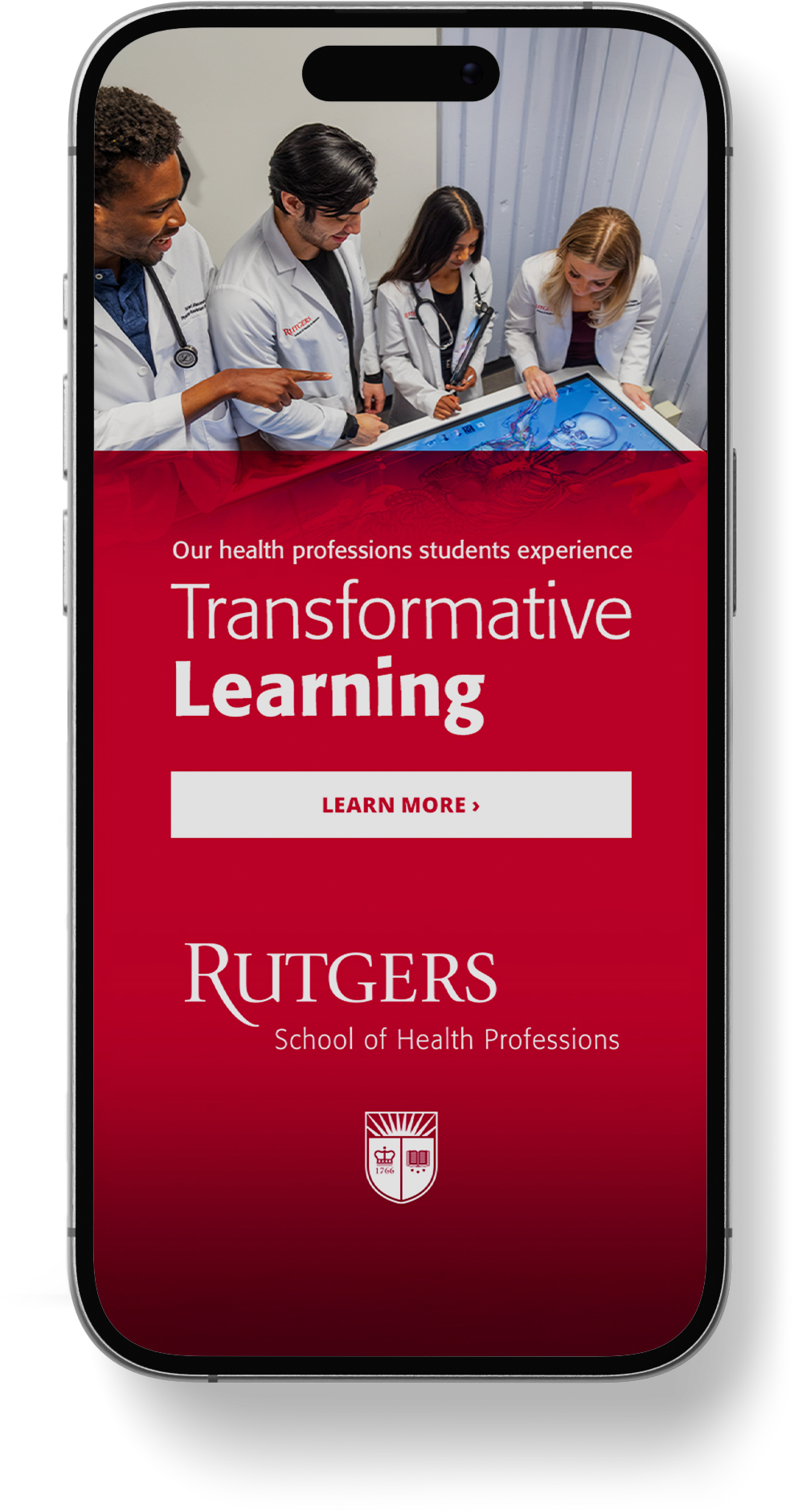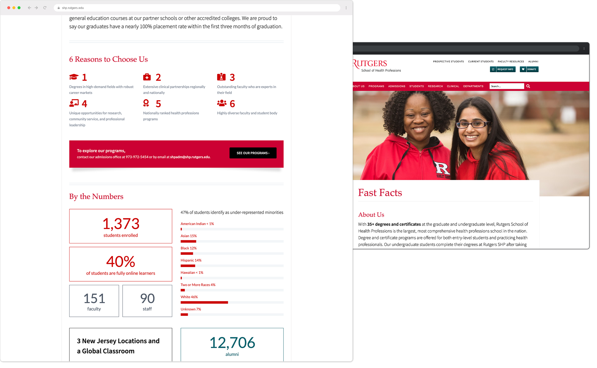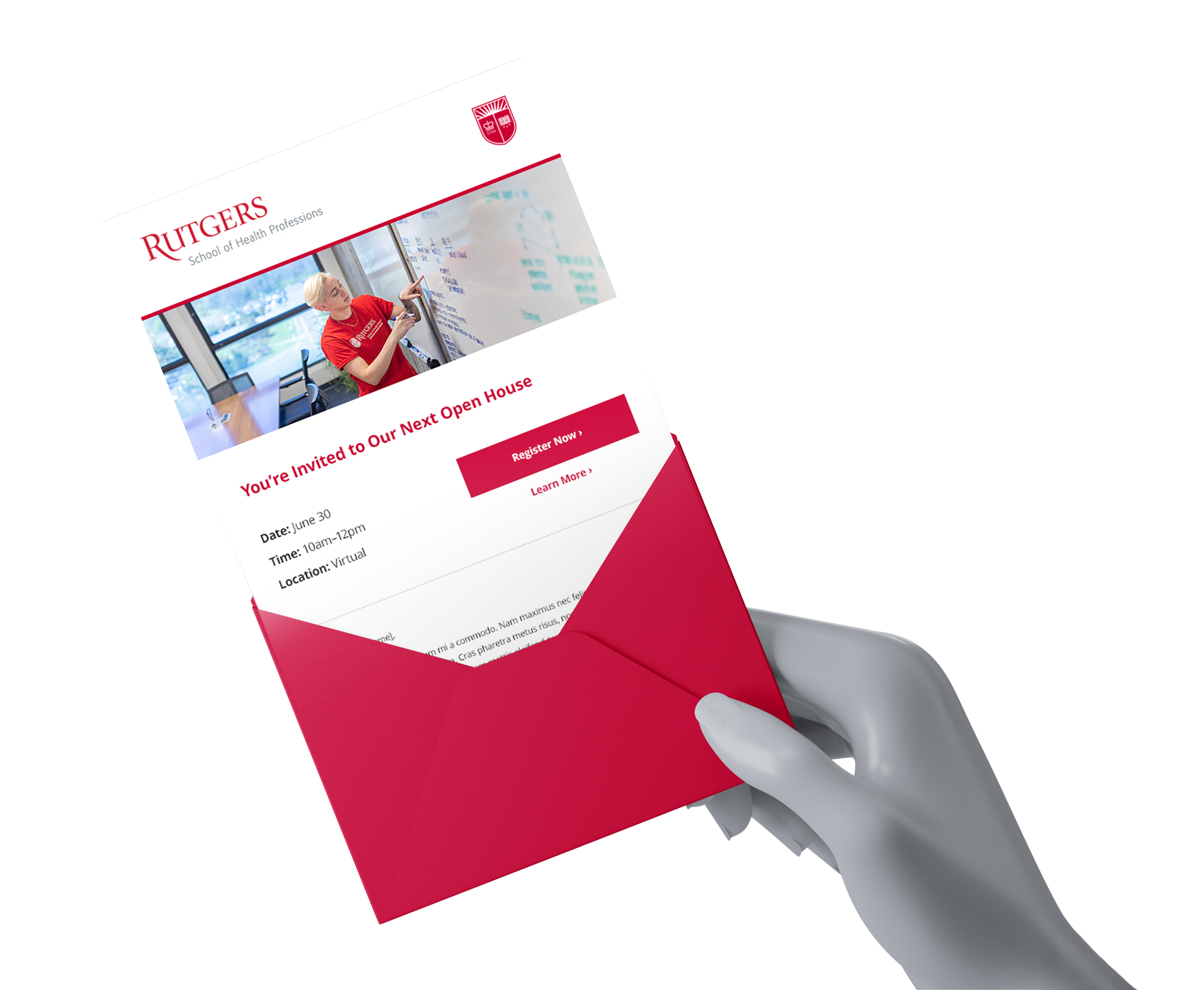 Delivered enrollment creative within Rutgers SHP brand standards for degree recruitment and open house promotion